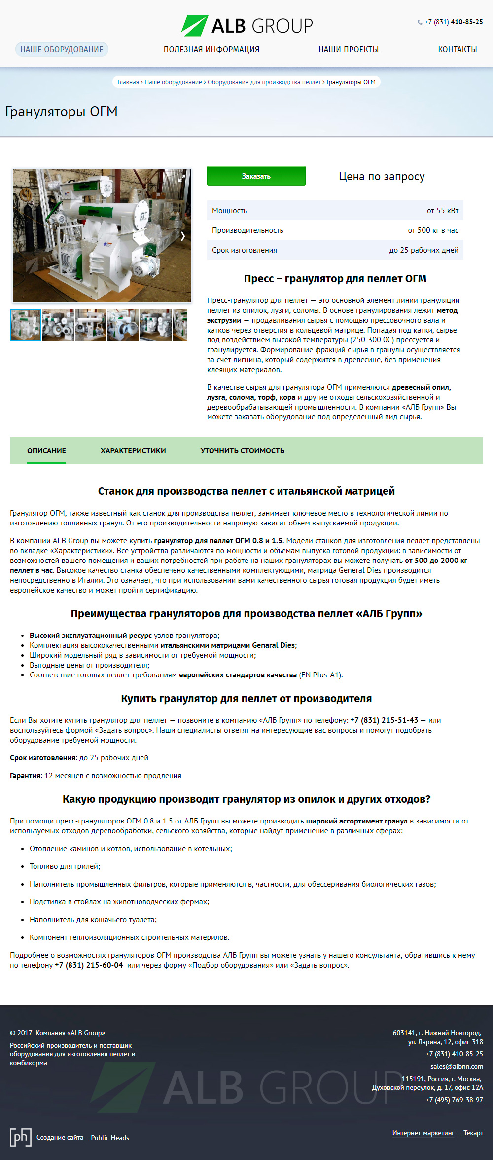 Сайт крупного производителя оборудования для гранулирования, комбикормов и удобрений
