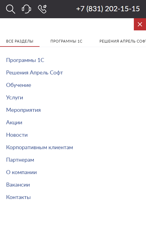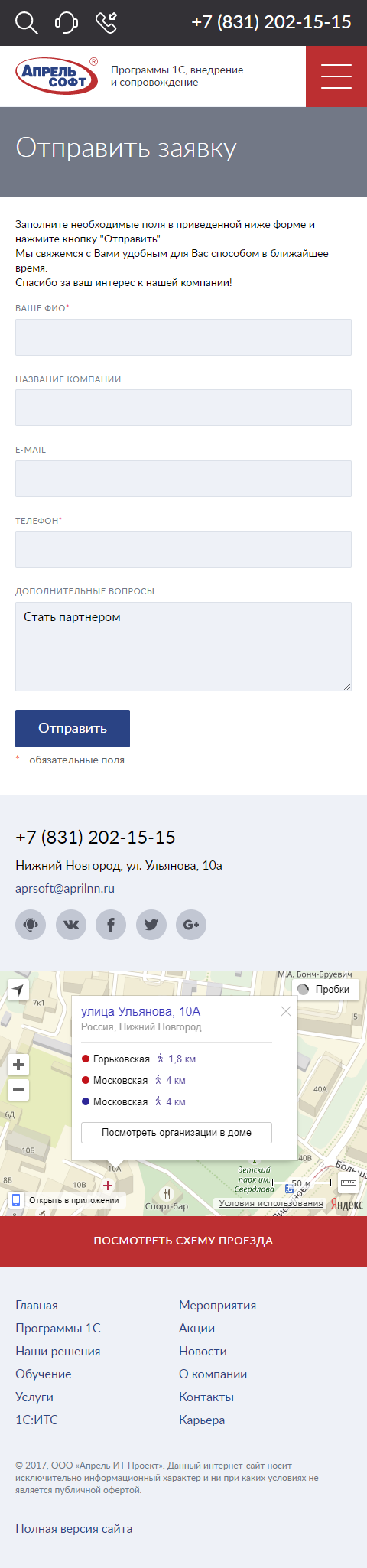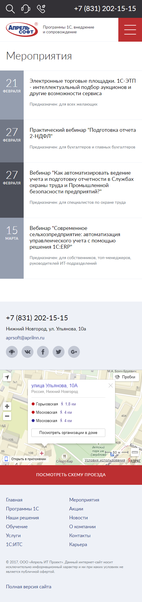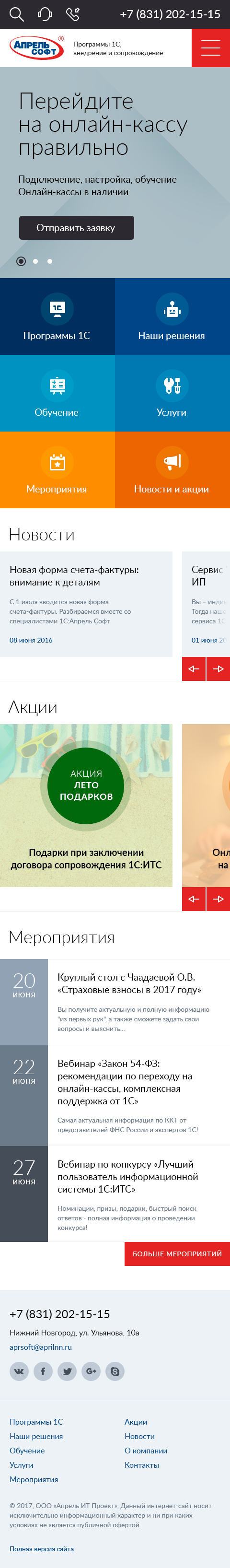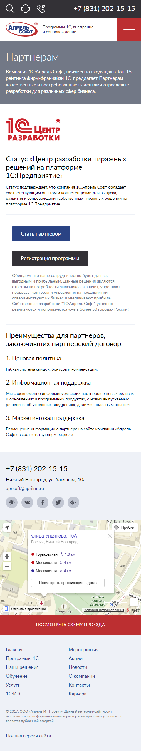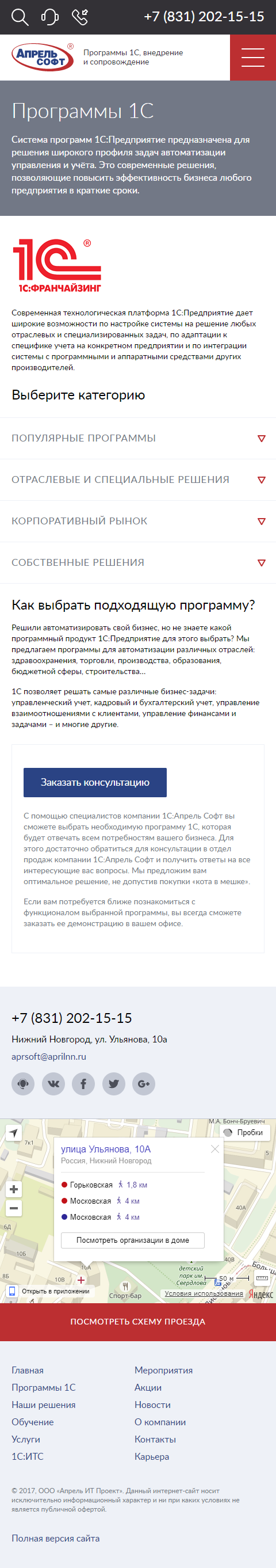 Мобильная версия сайта ведущей компании Нижнего Новгорода по внедрению продуктов 1С