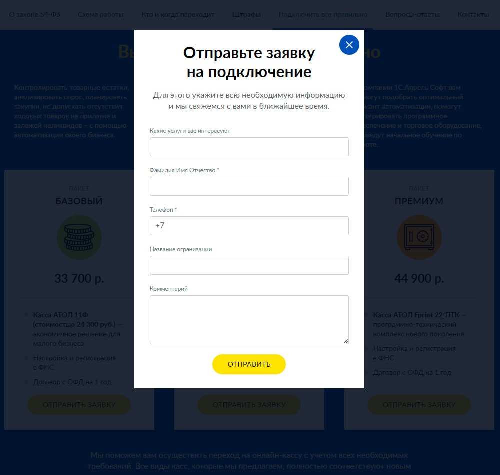 Лендинг по поддержке бизнеса при переходе на онлайн-кассы от компании «Апрель Софт»
