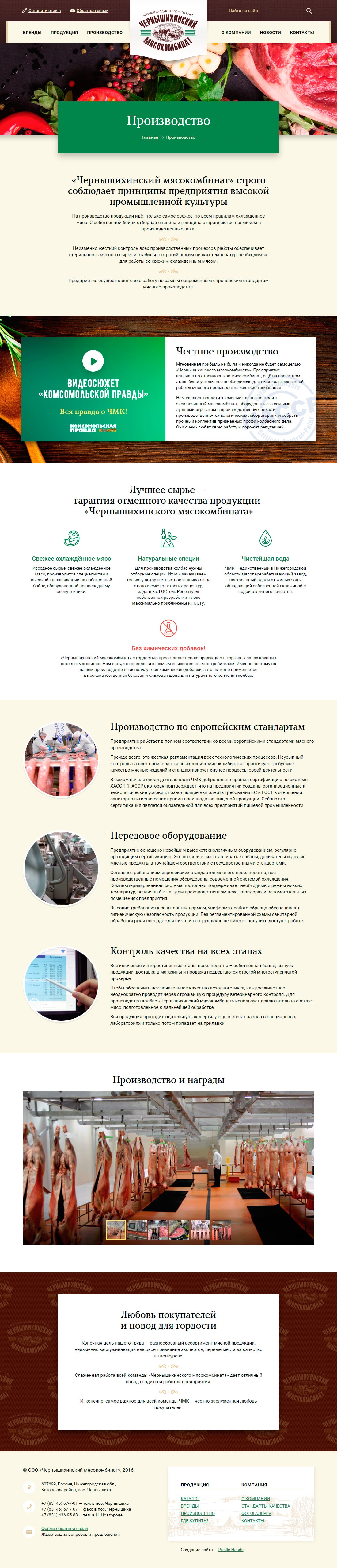 Известный нижегородский производитель мясной продукции «Чернышихинский мясоперерабатывающий комбинат» позицинирует сябя как современное предприятие, работающее в экологически чистом районе и выбирающее исключительно натуральное сырье и передовые технологии для производства своей продукции.