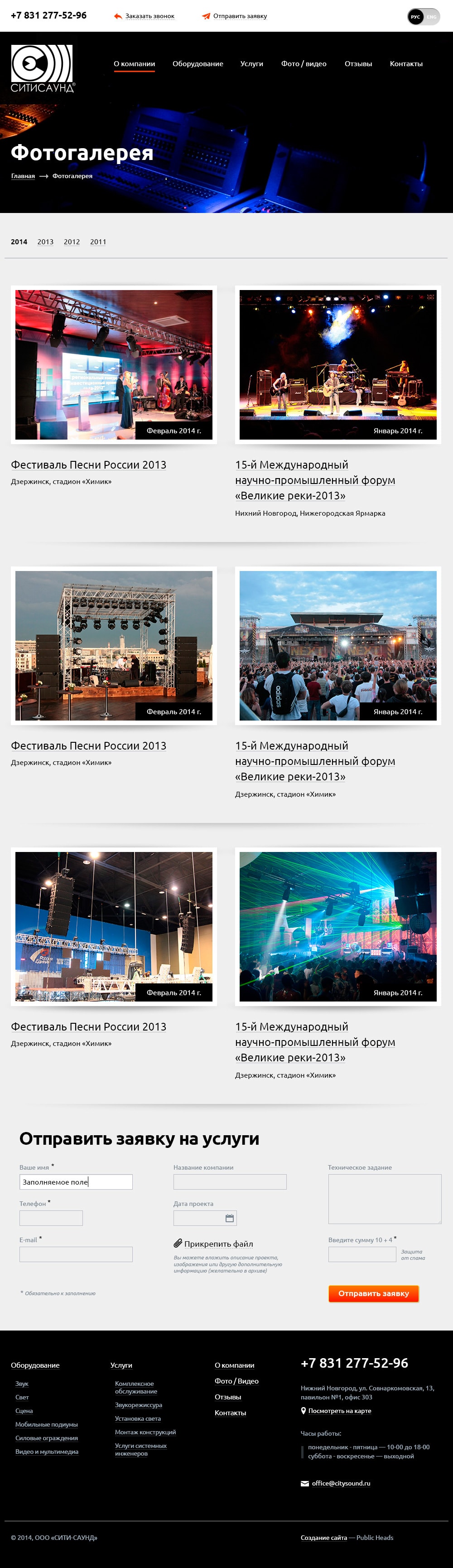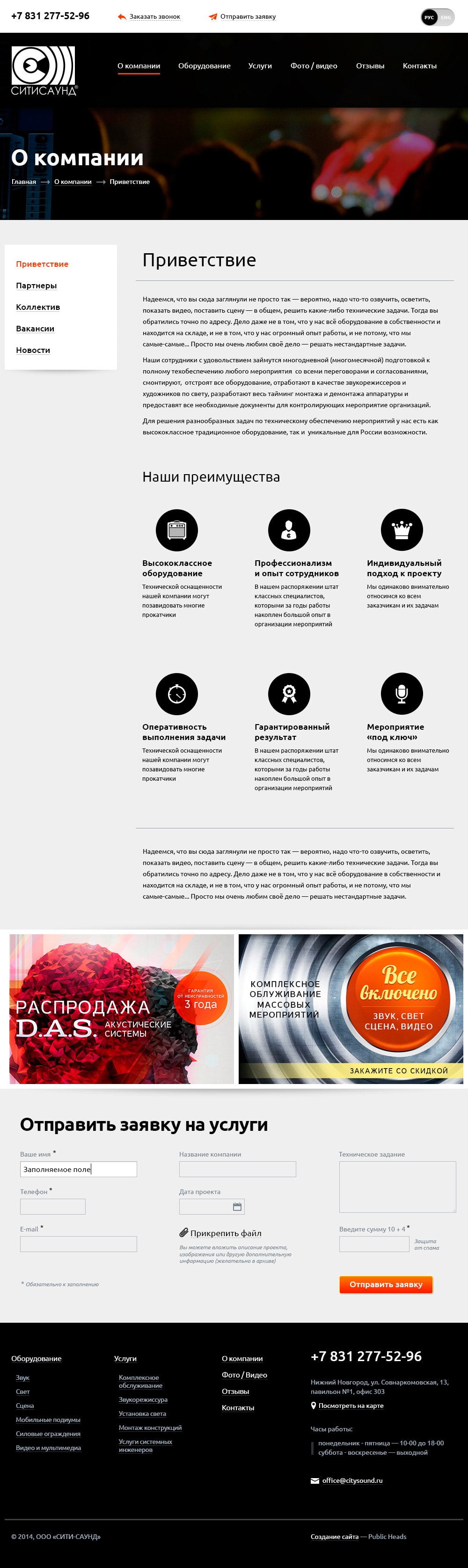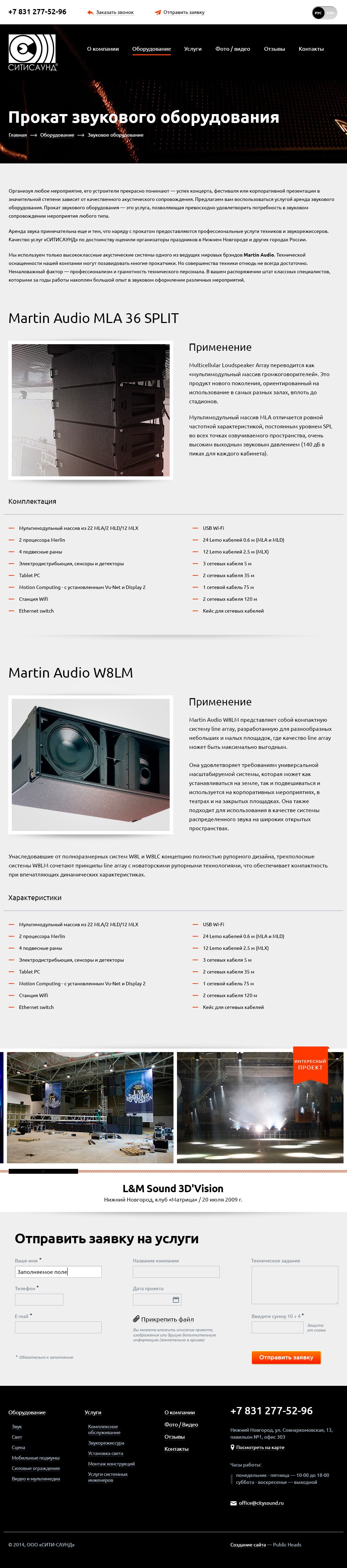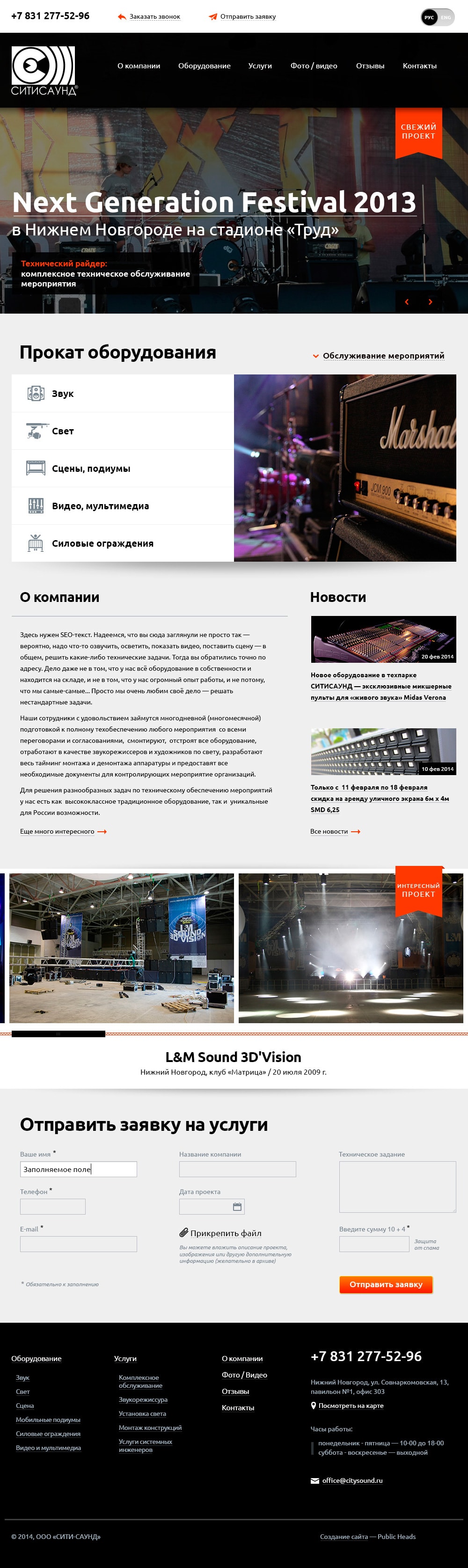 Корпоративный сайт для компании, занимающейся звуковым и световым обеспечением мероприятий
