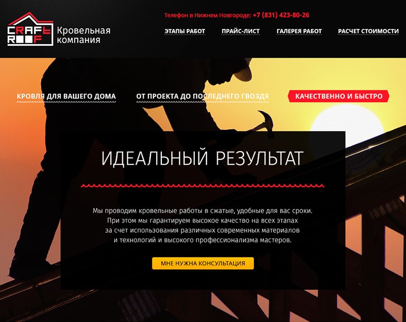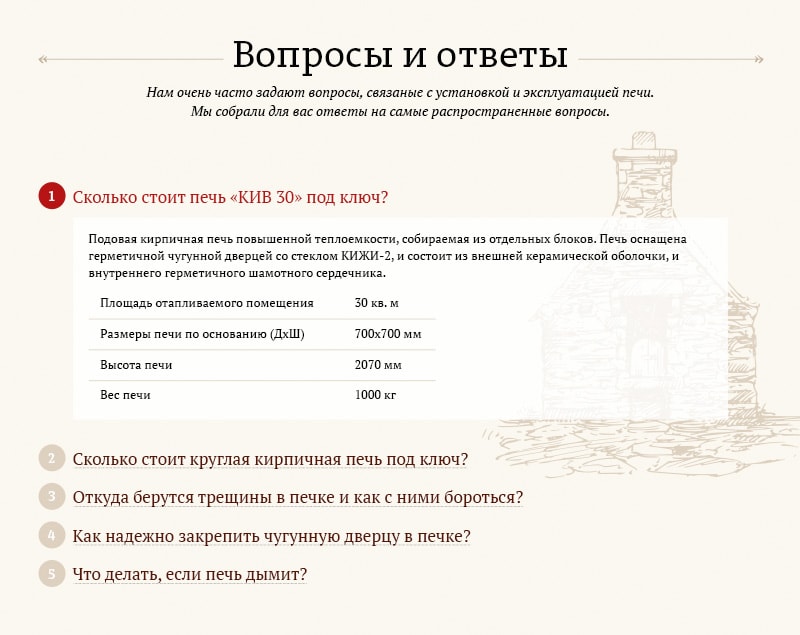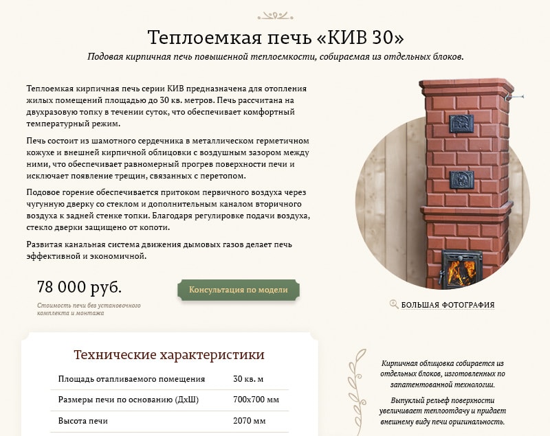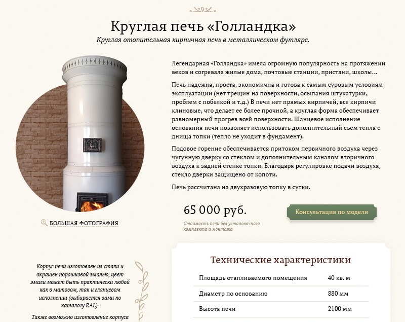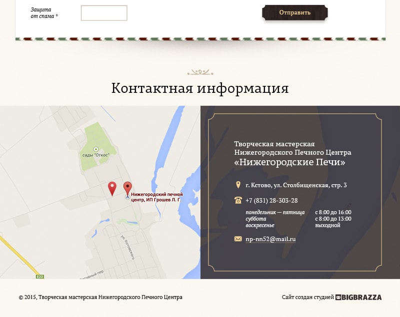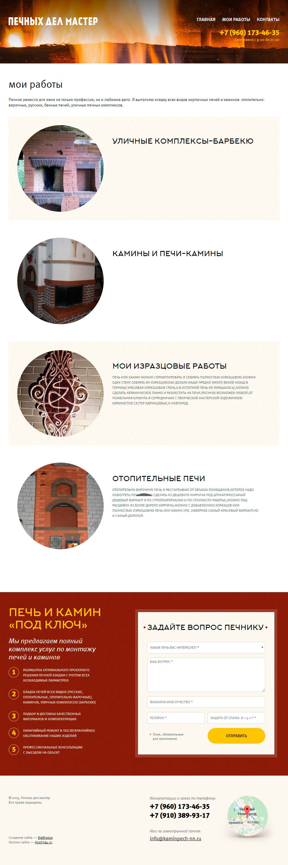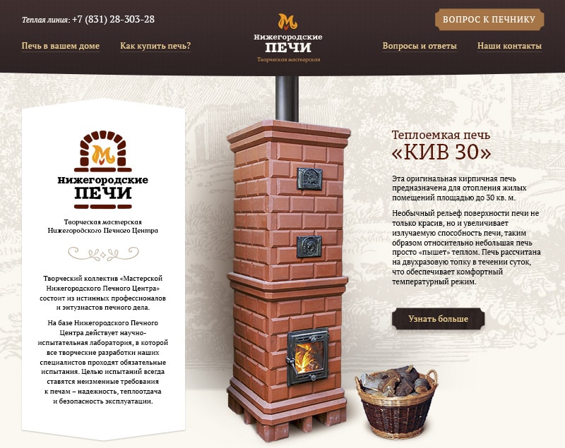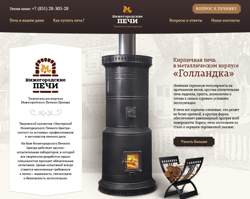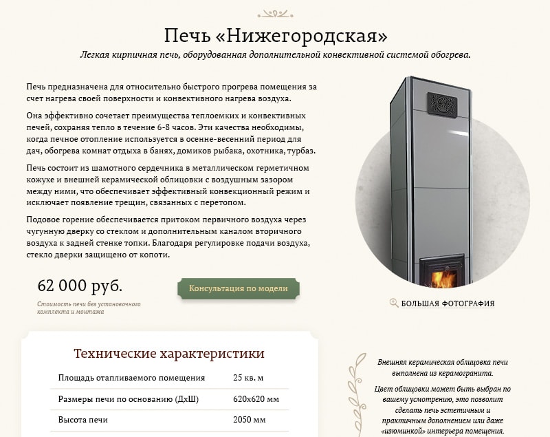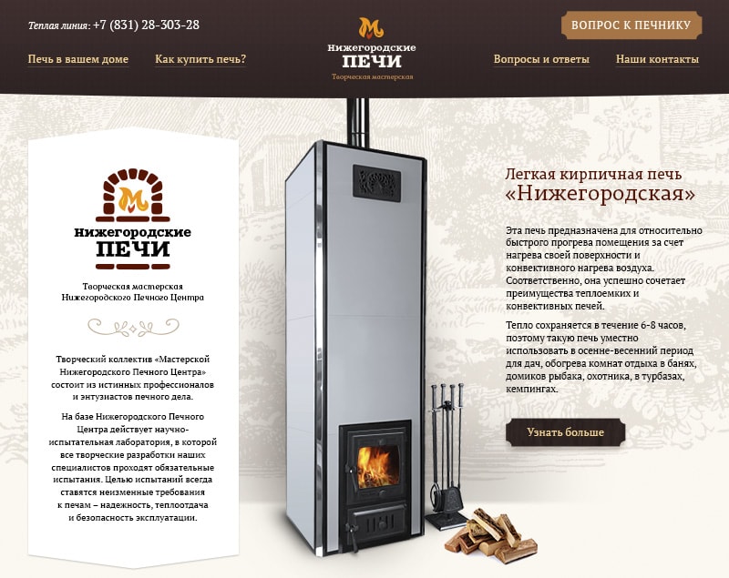 Лендинг для мастерской «Нижегородского Печного Центра»