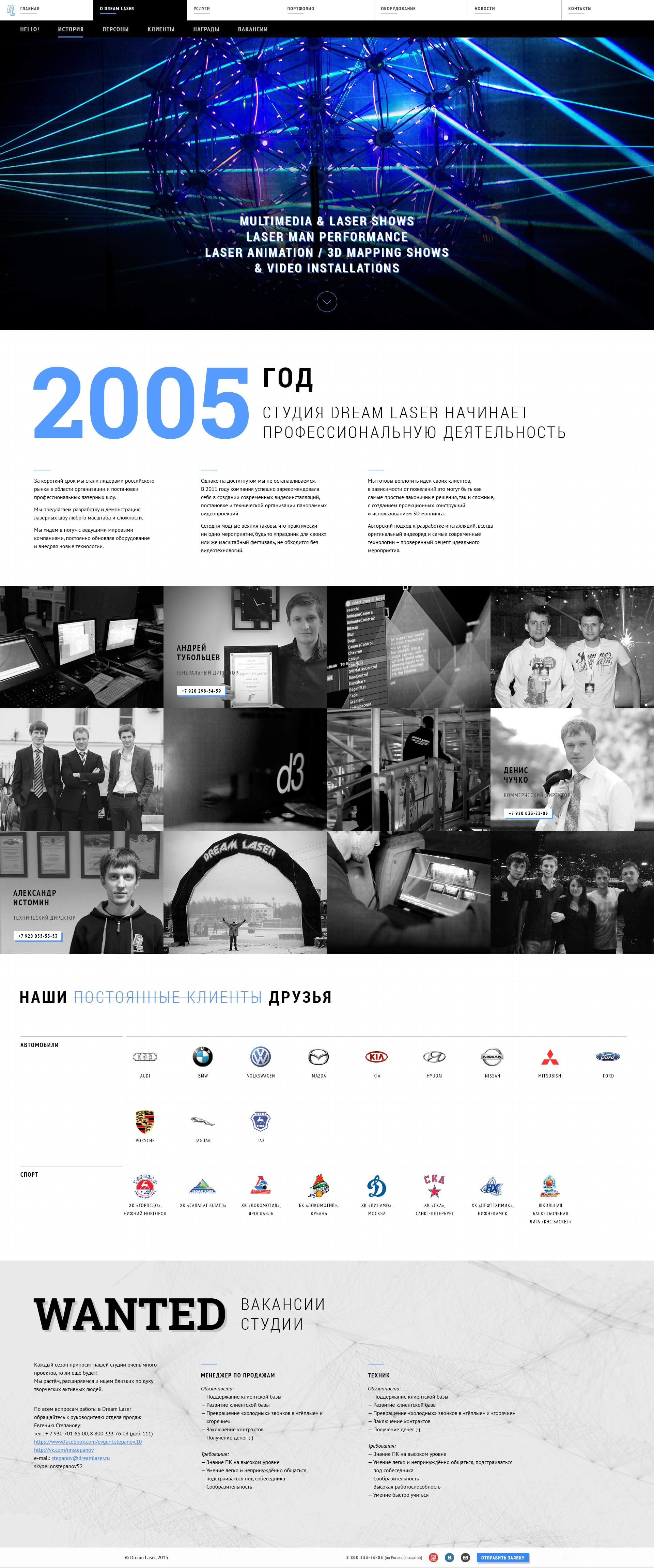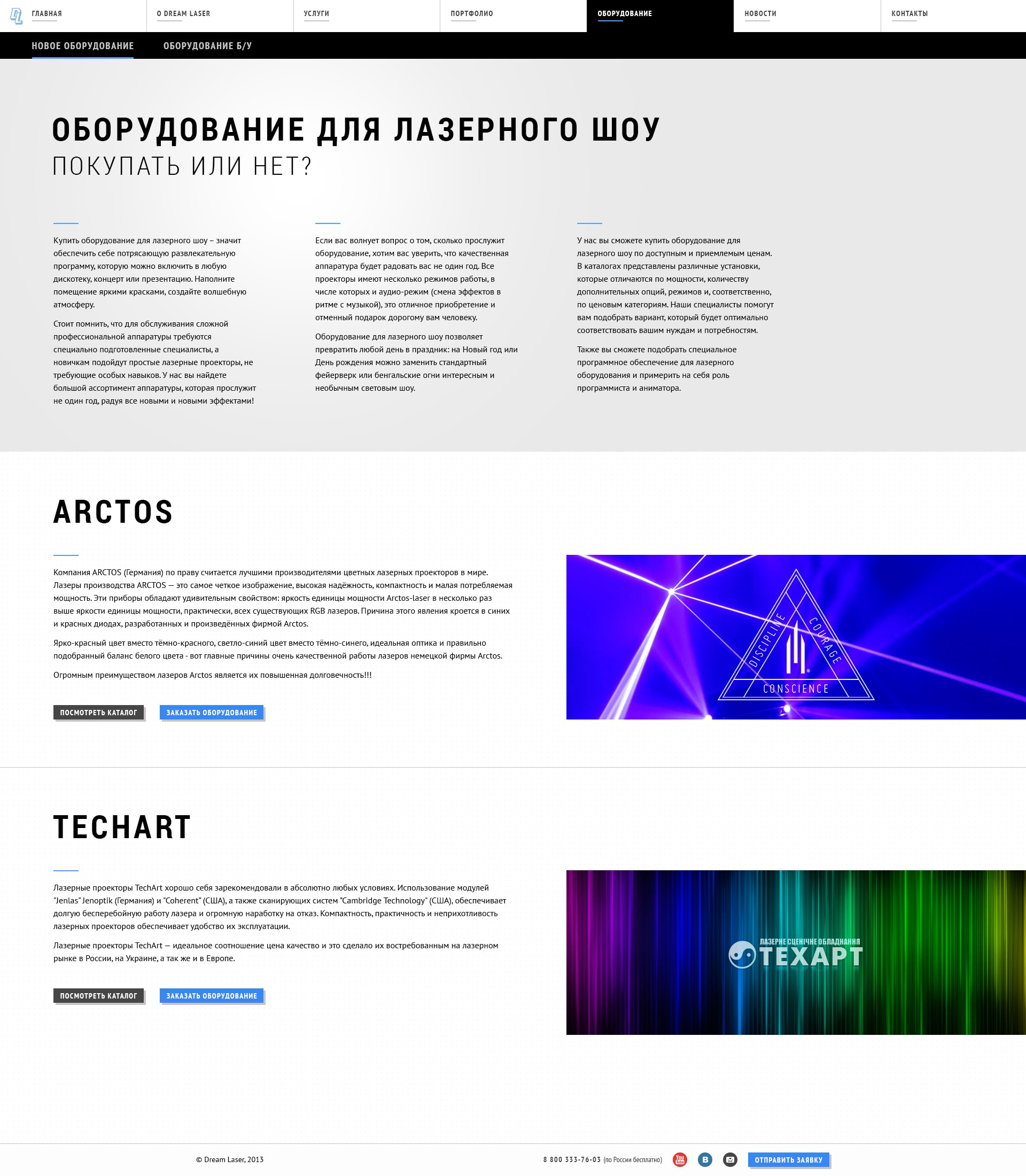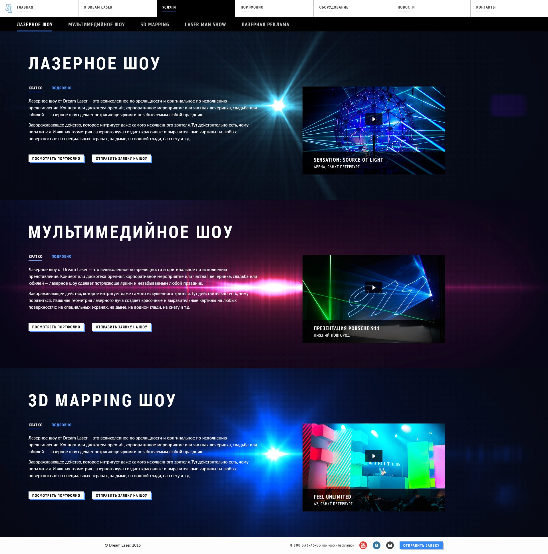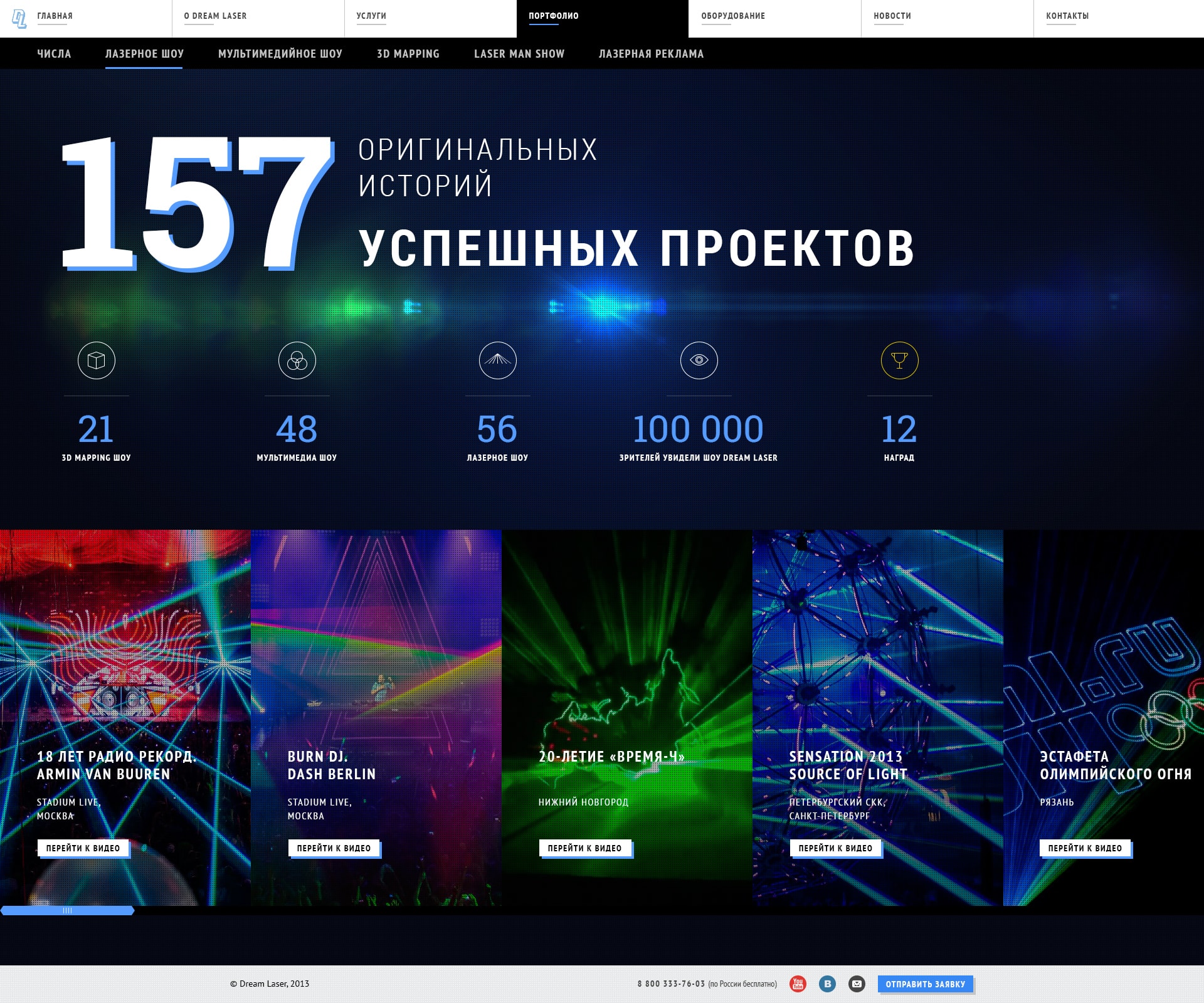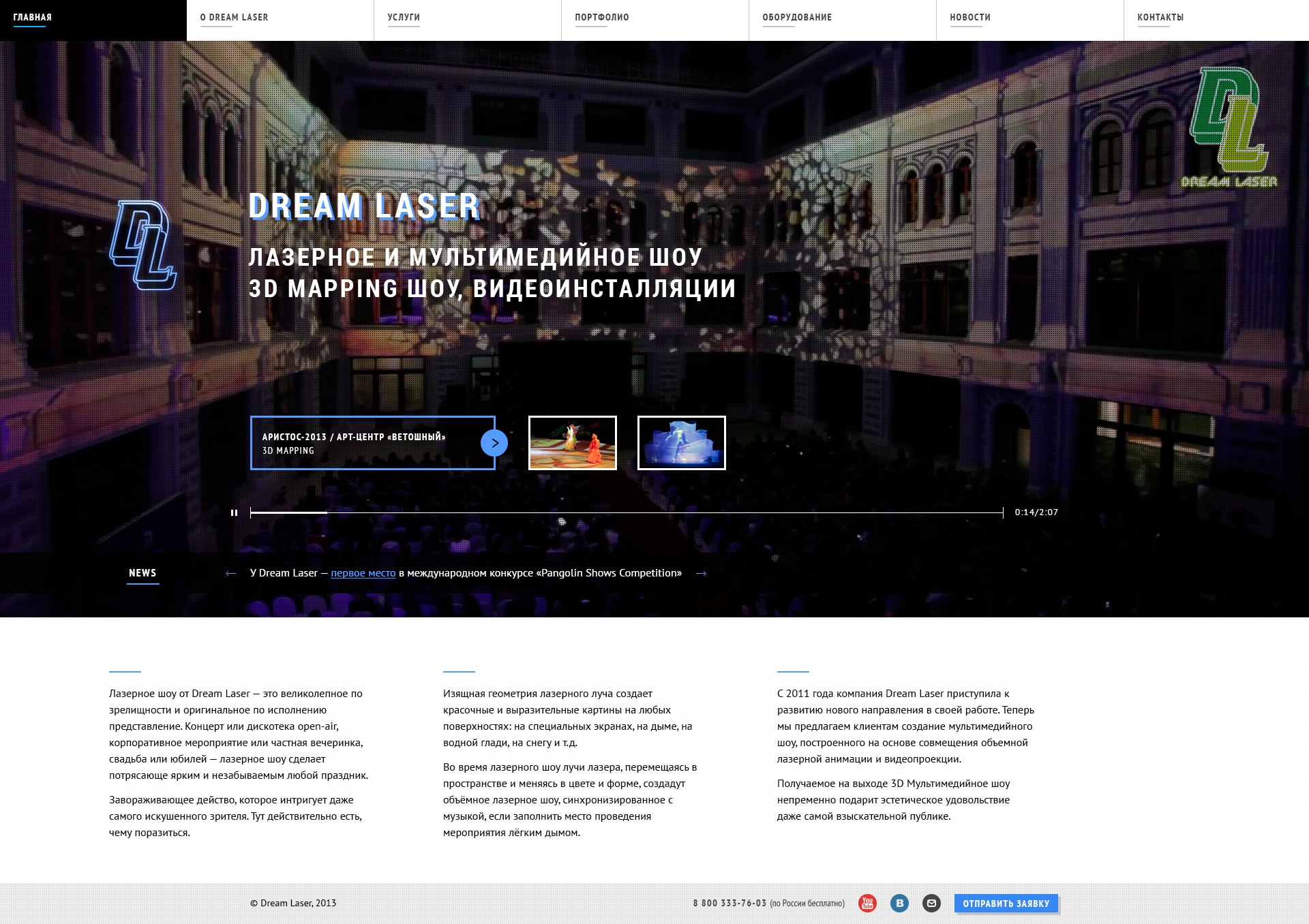 Промо-сайт для студии Dream Laser, лидера в области организации лазерных шоу