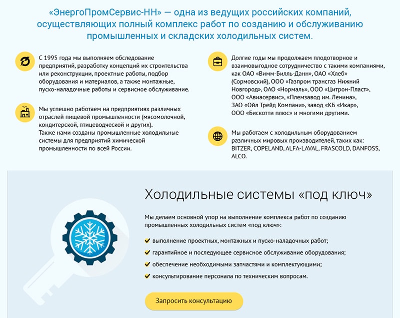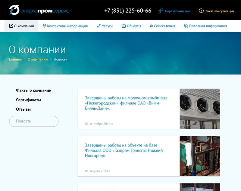 Создание и развитие корпоративного сайта было одним из важнейших шагов маркетинговой стратегии компании. Сайт содержит исчерпывающую информацию по продукции и услугам компании. Приятный «экодизайн» делает разнообразный контент легким для восприятия. Грамотное построение страниц и использование элементов призыва к действию обеспечивает большое число обращений в компанию через интернет-канал.