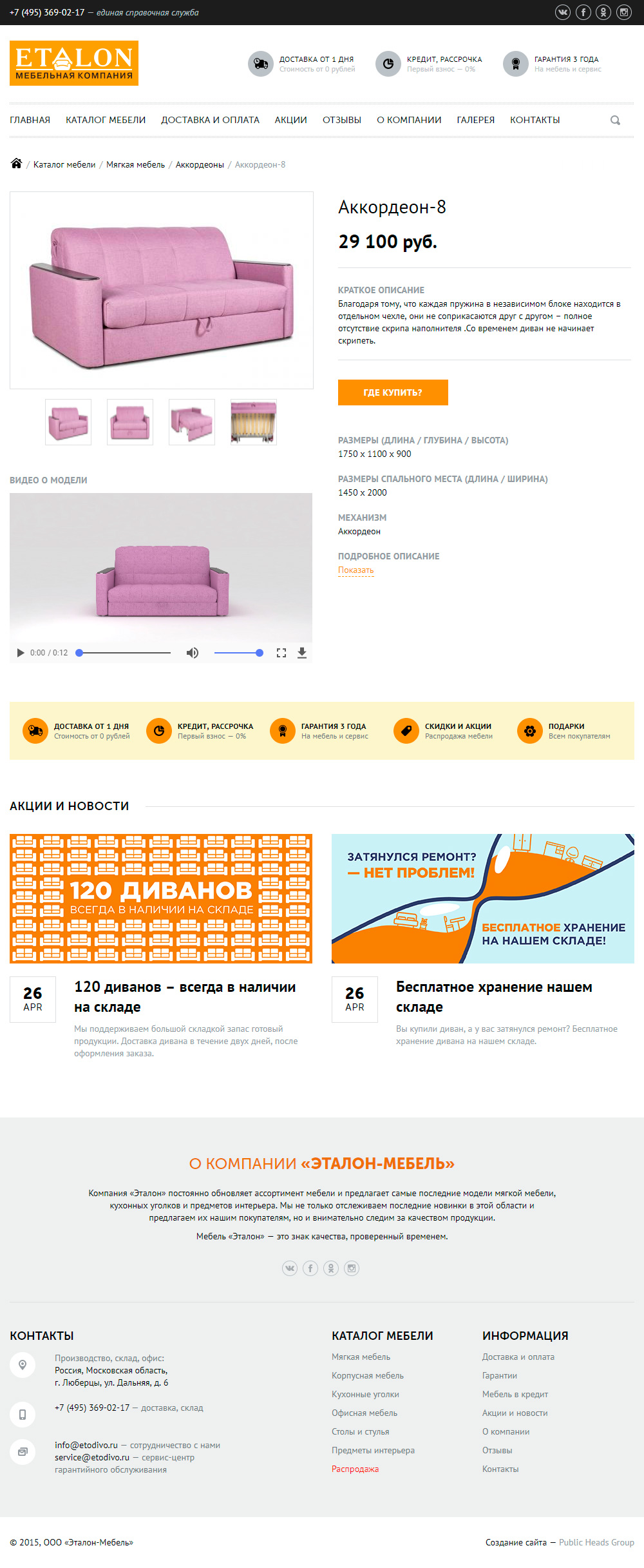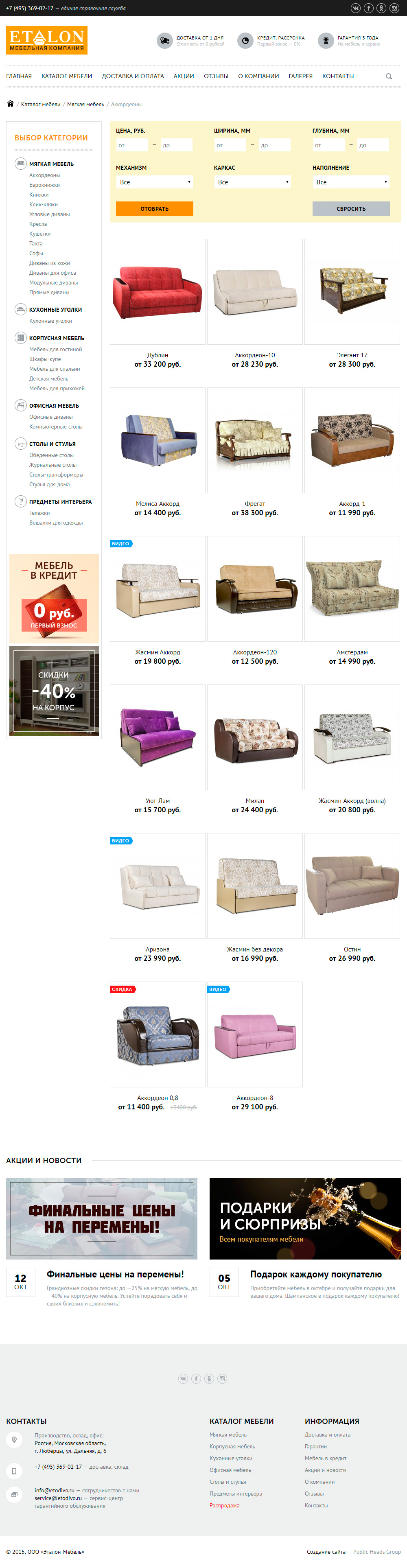 Сайт-каталог мебели для сети салонов в Москве и Московской области
