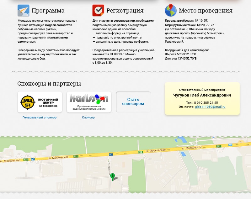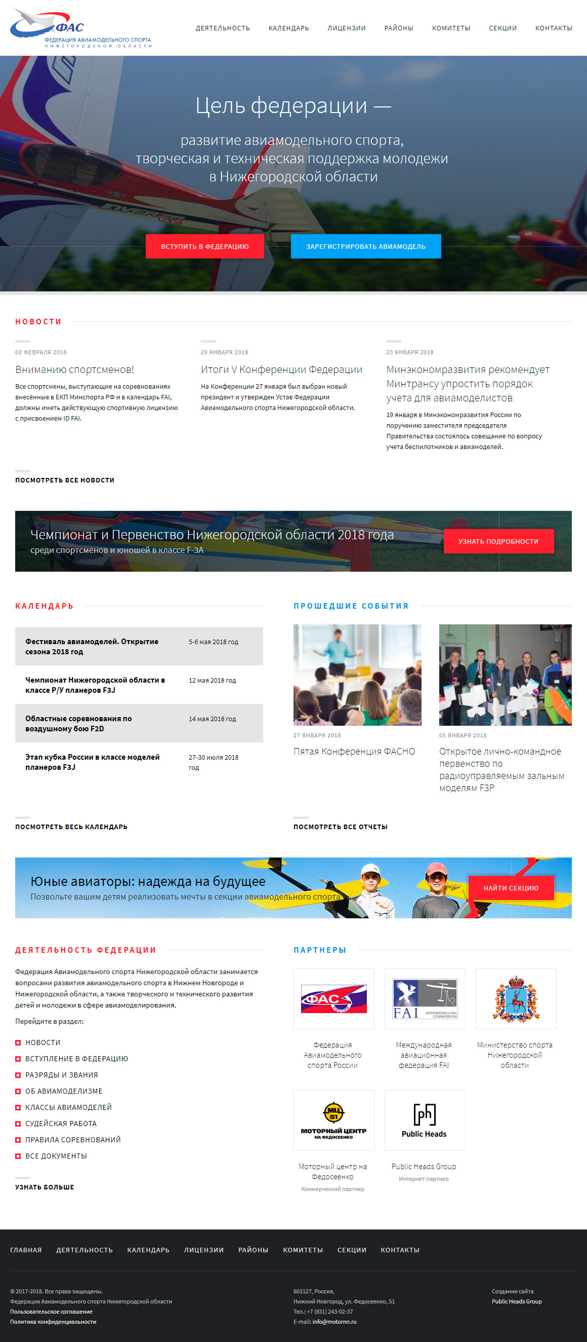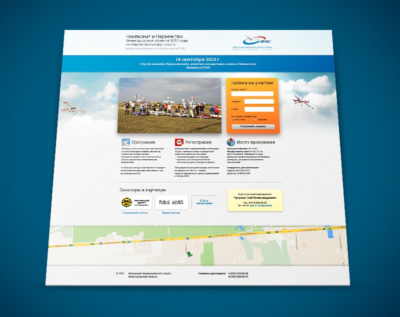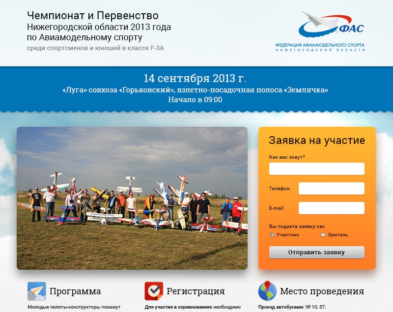 Лендинг для мероприятия Федерации авиамодельного спорта Нижегородской области