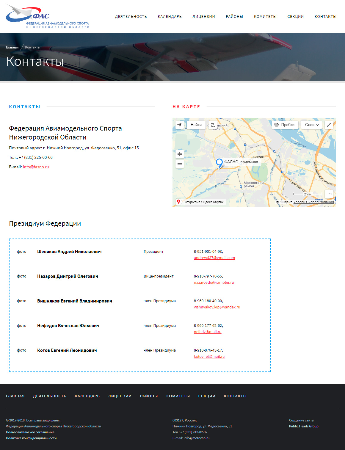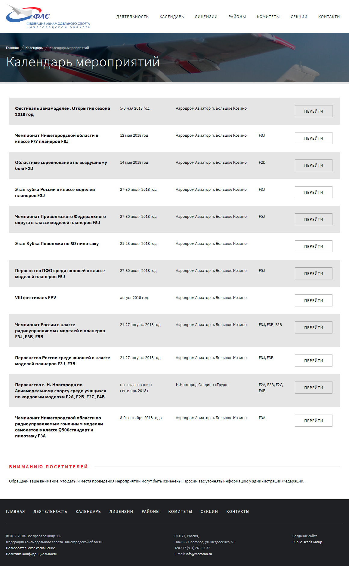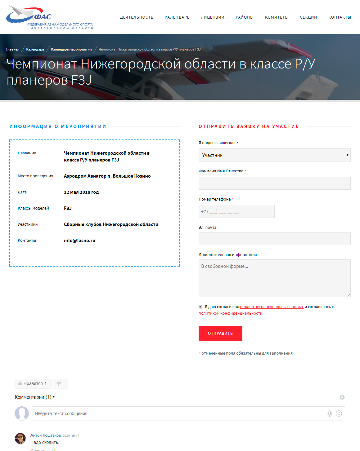 Лендинг для мероприятия Федерации авиамодельного спорта Нижегородской области