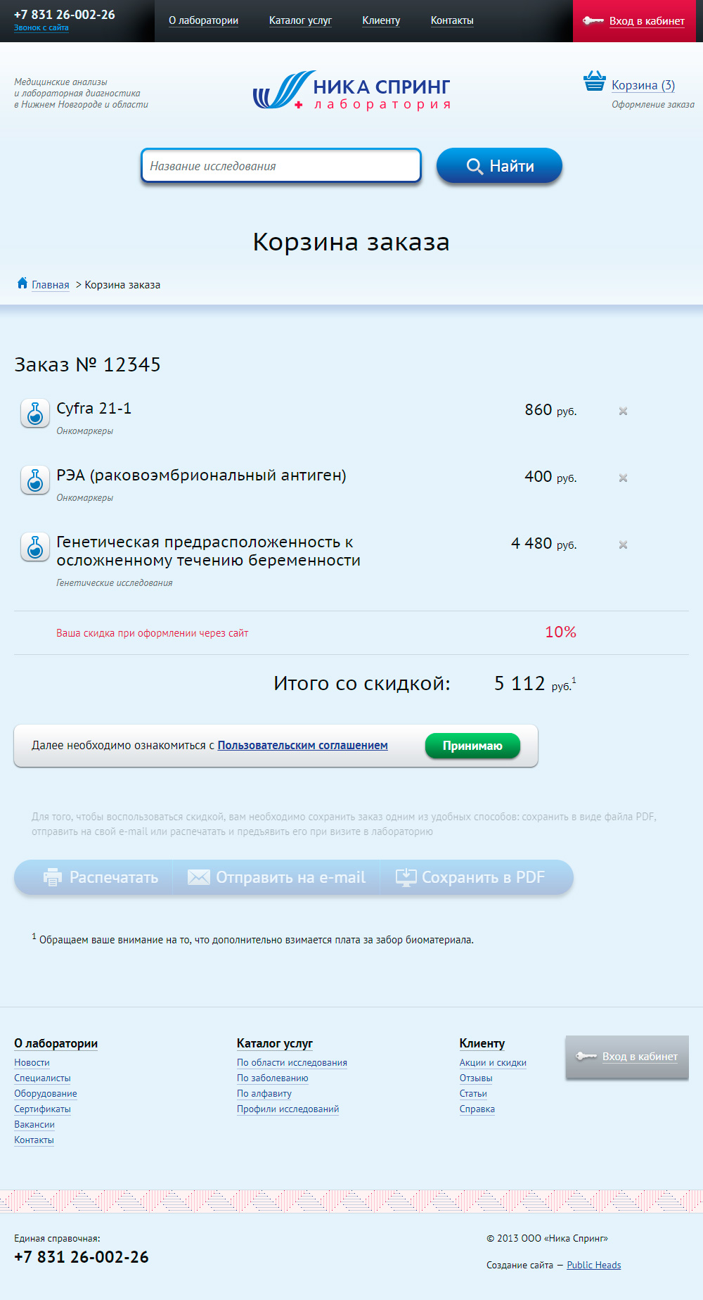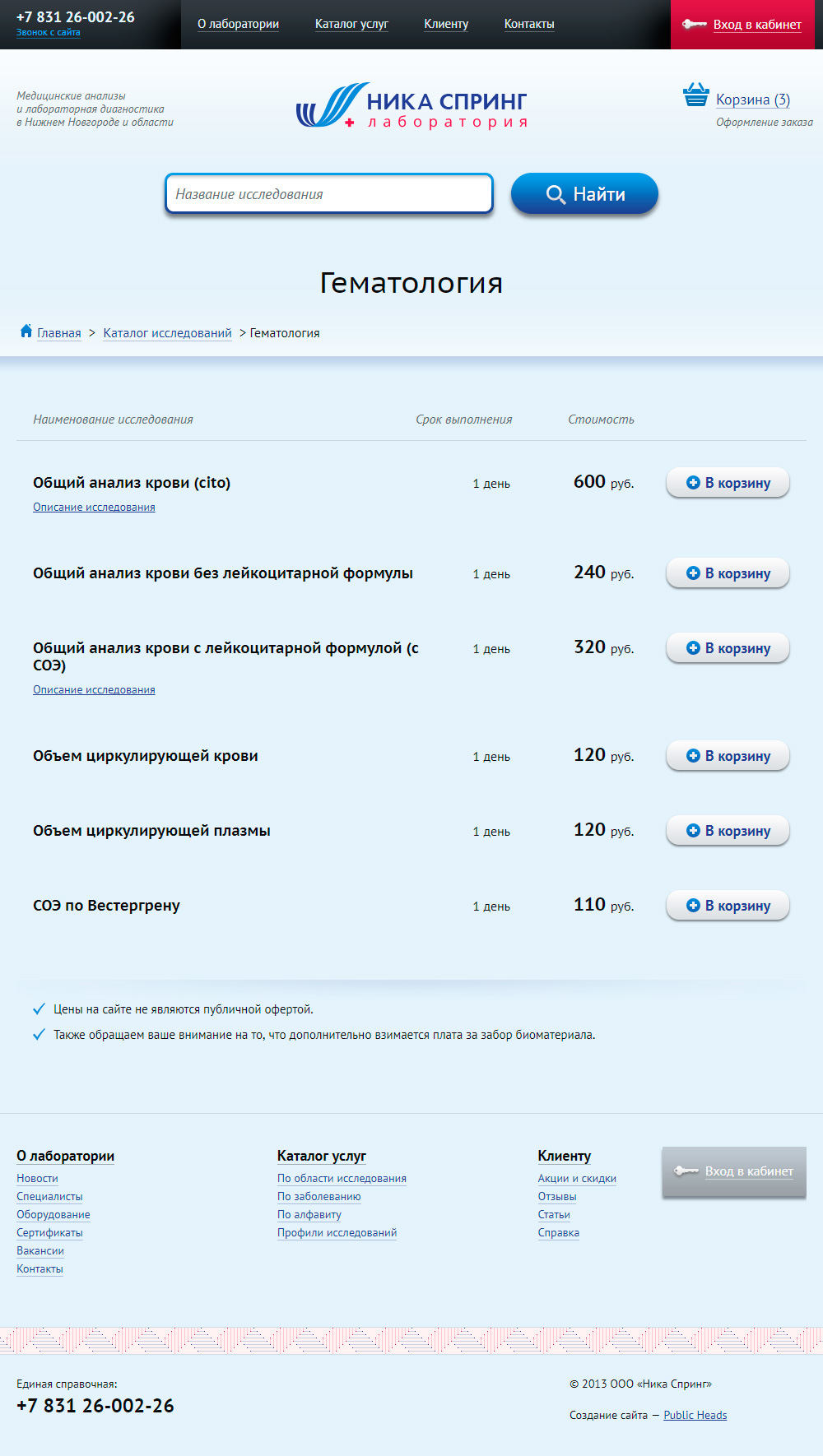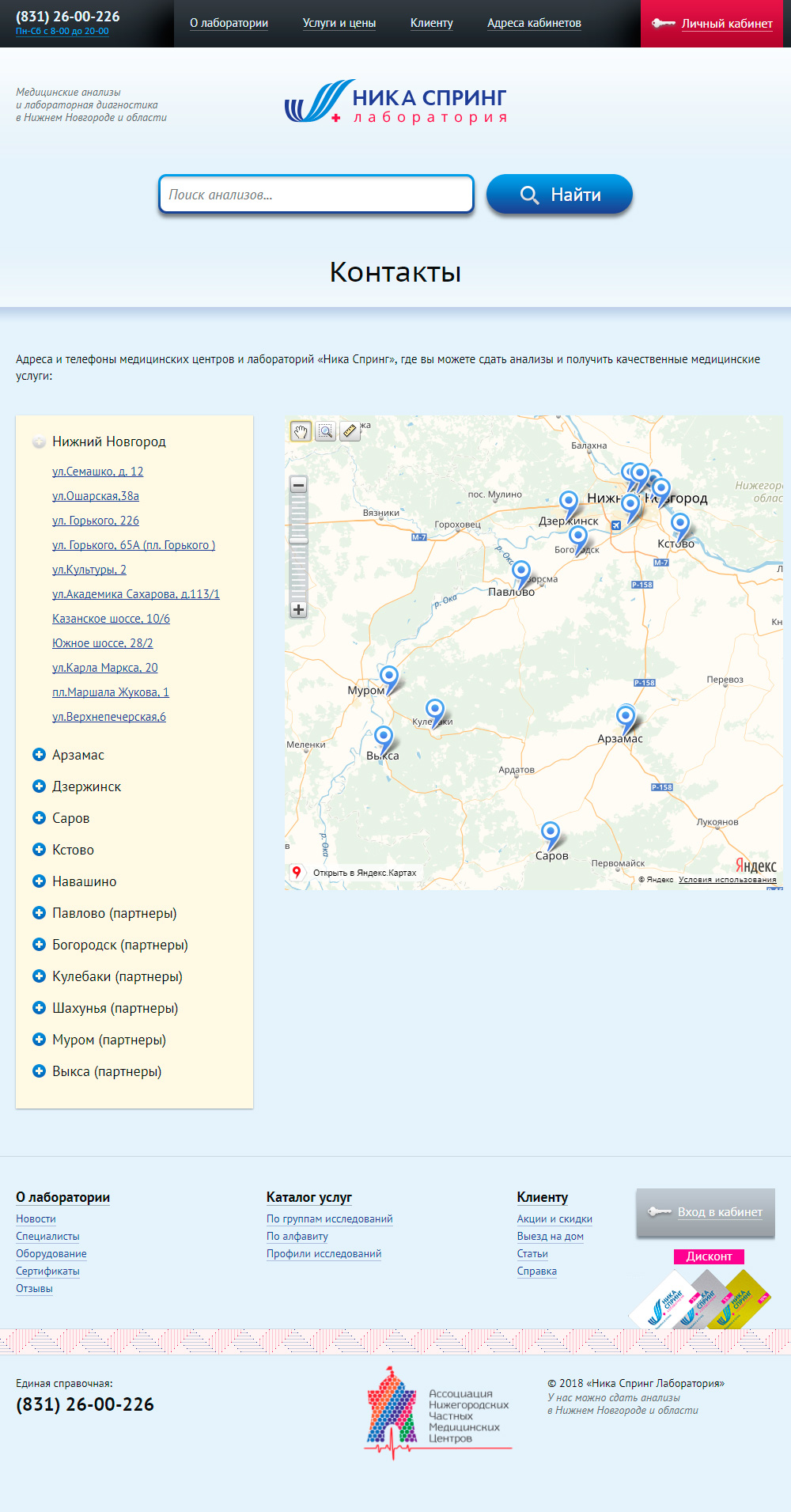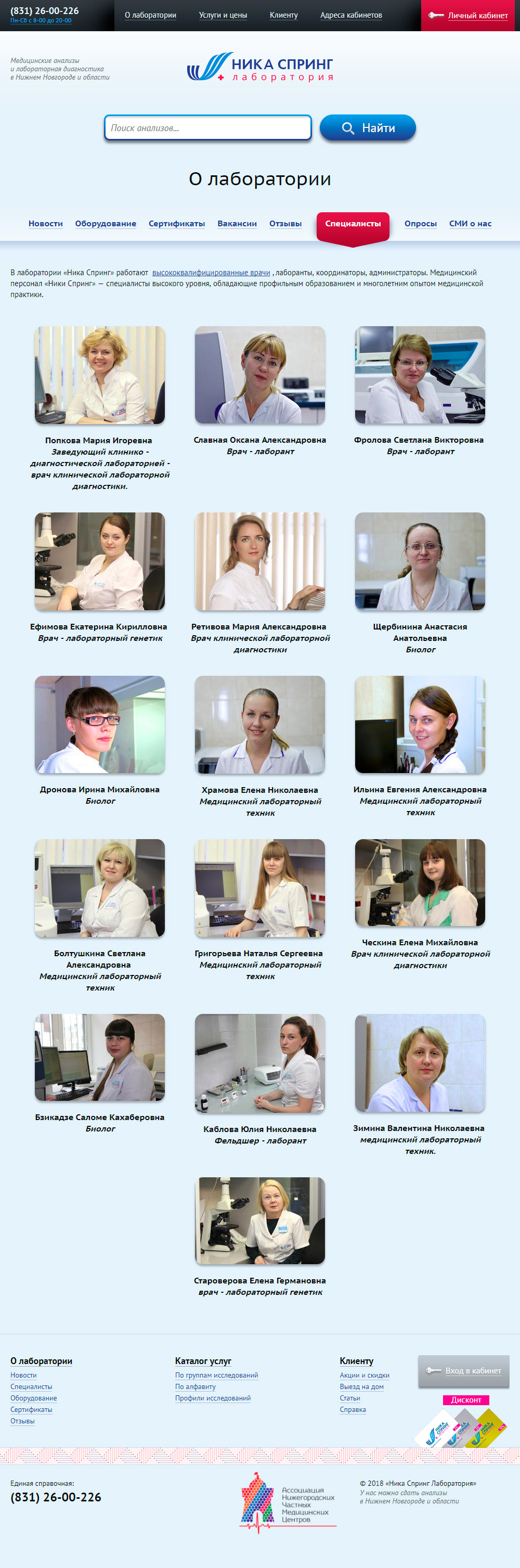 Сайт для сети медицинских лабораторий в Нижнем Новгороде