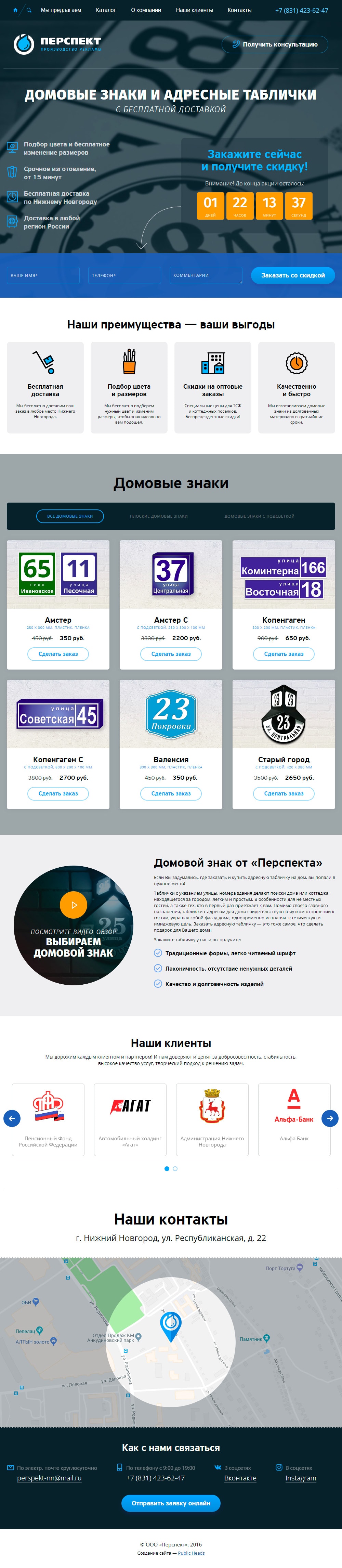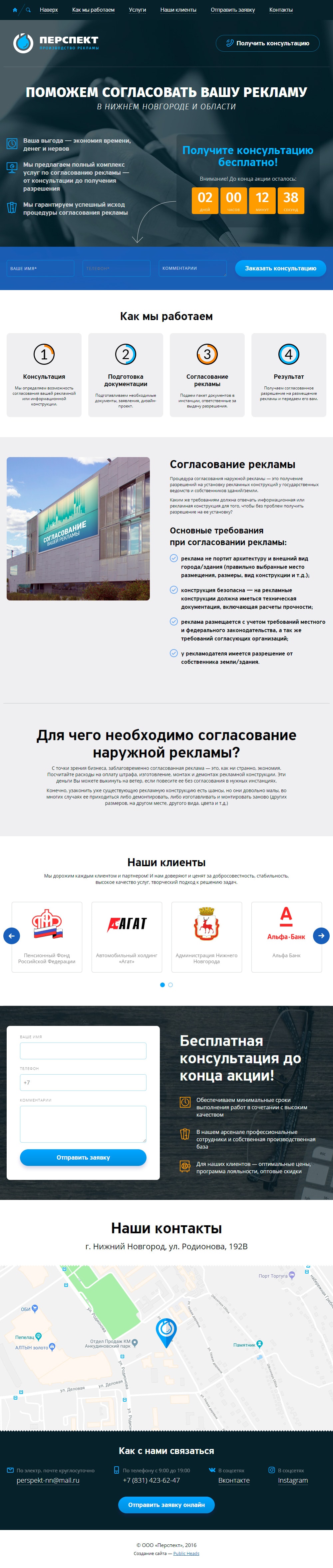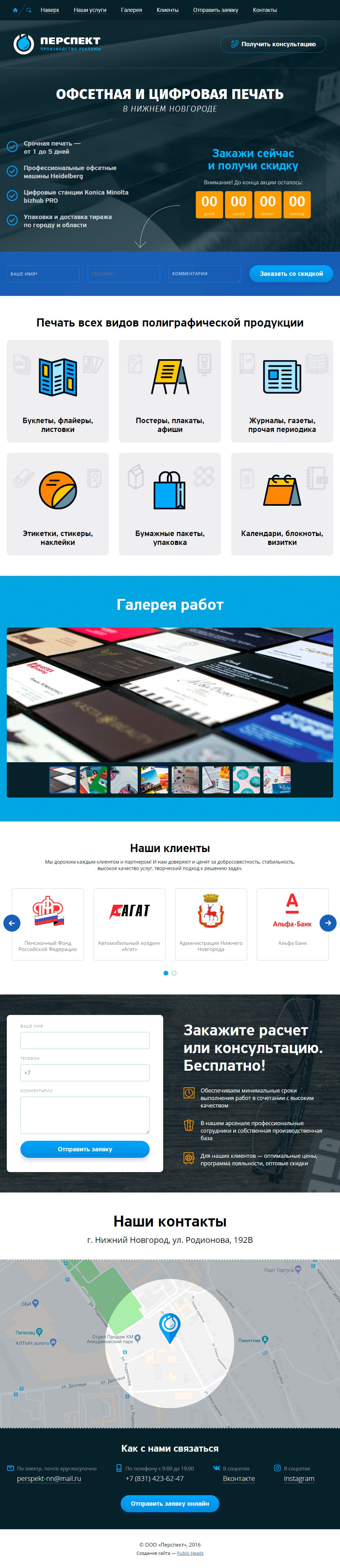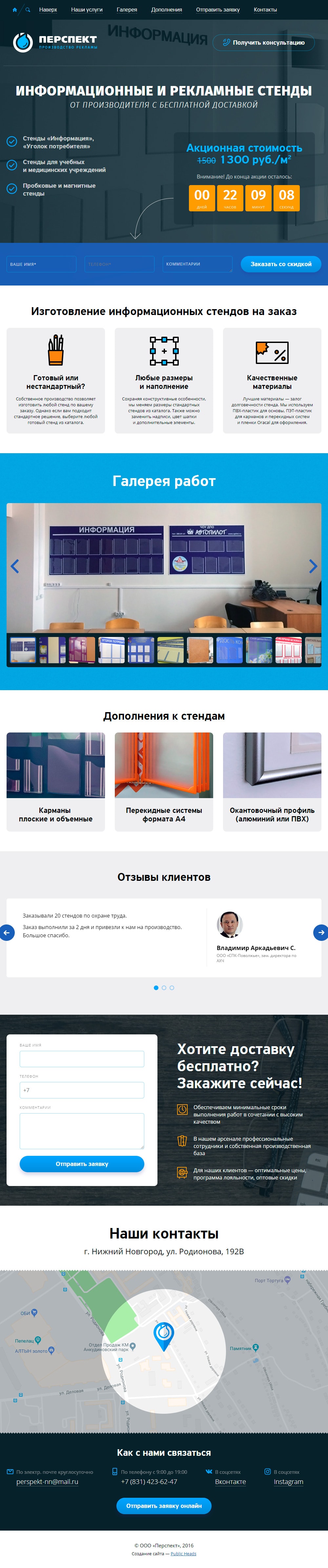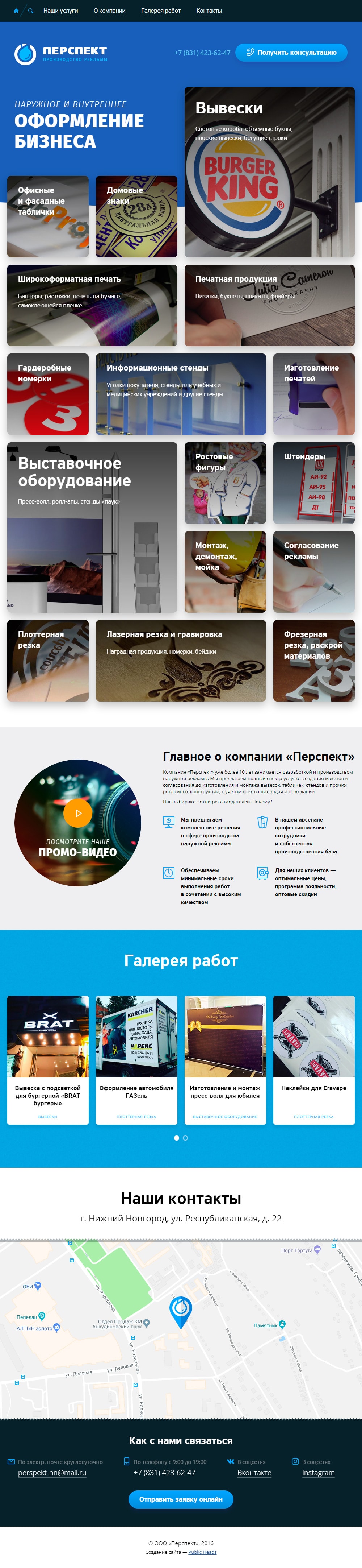 Комплекс лендингов для рекламно-производственной компании «Перспект»