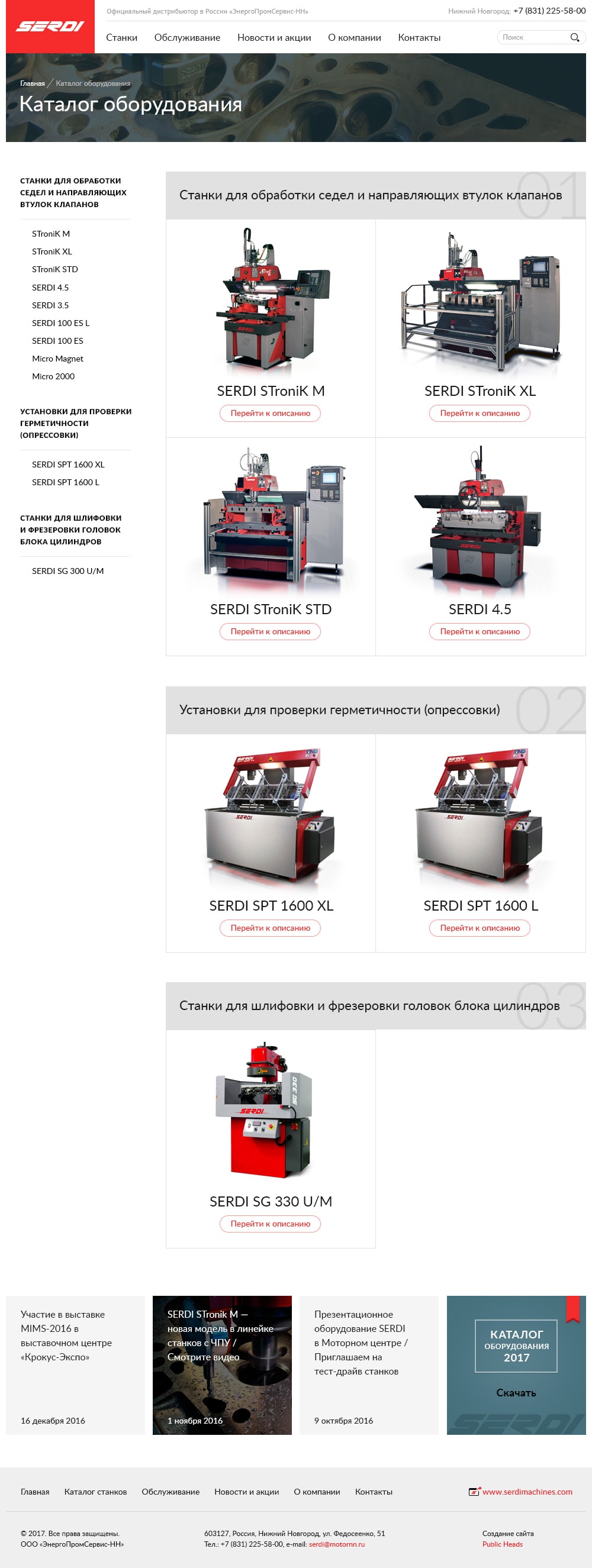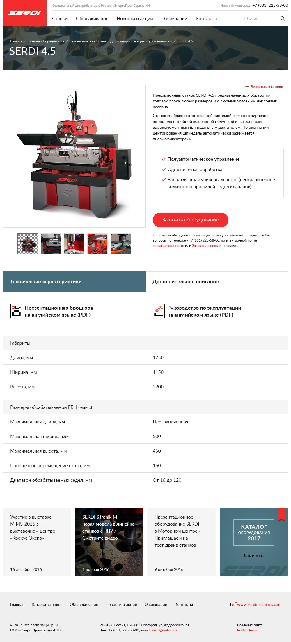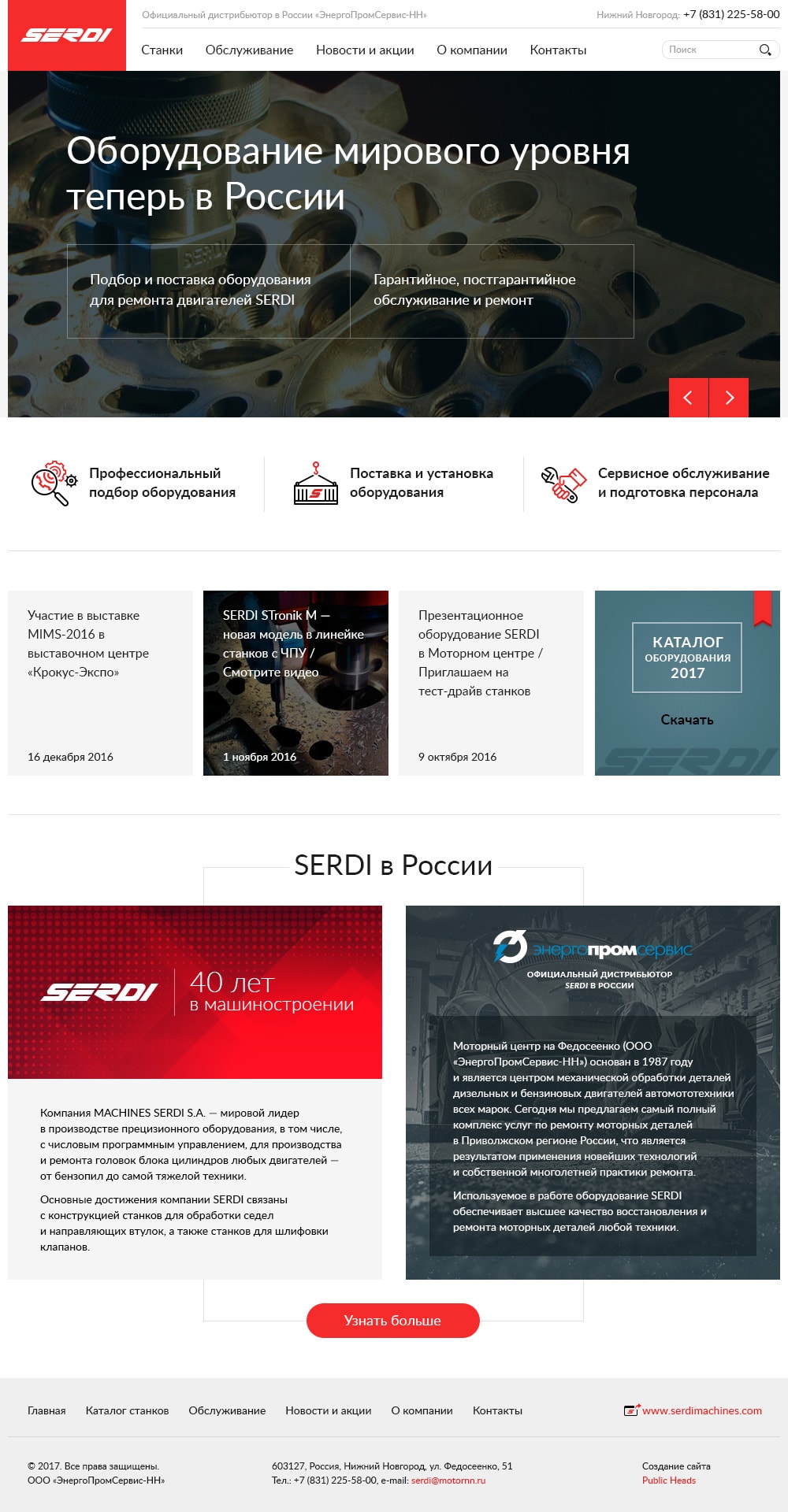 Сайт для эксклюзивного дистрибьютора MACHINES SERDI S.A. в России