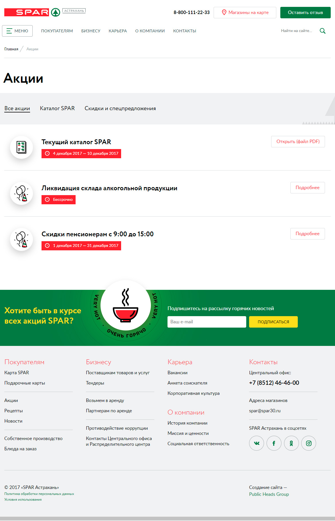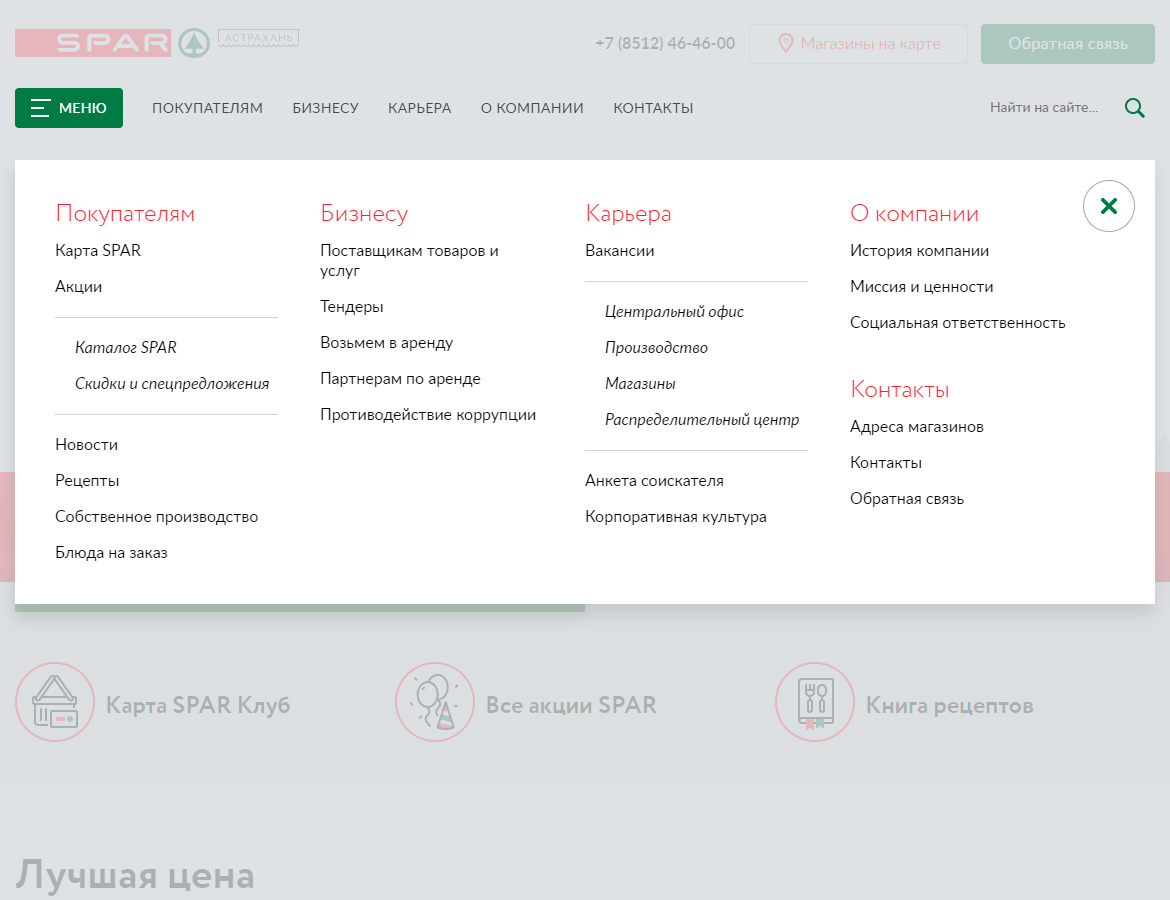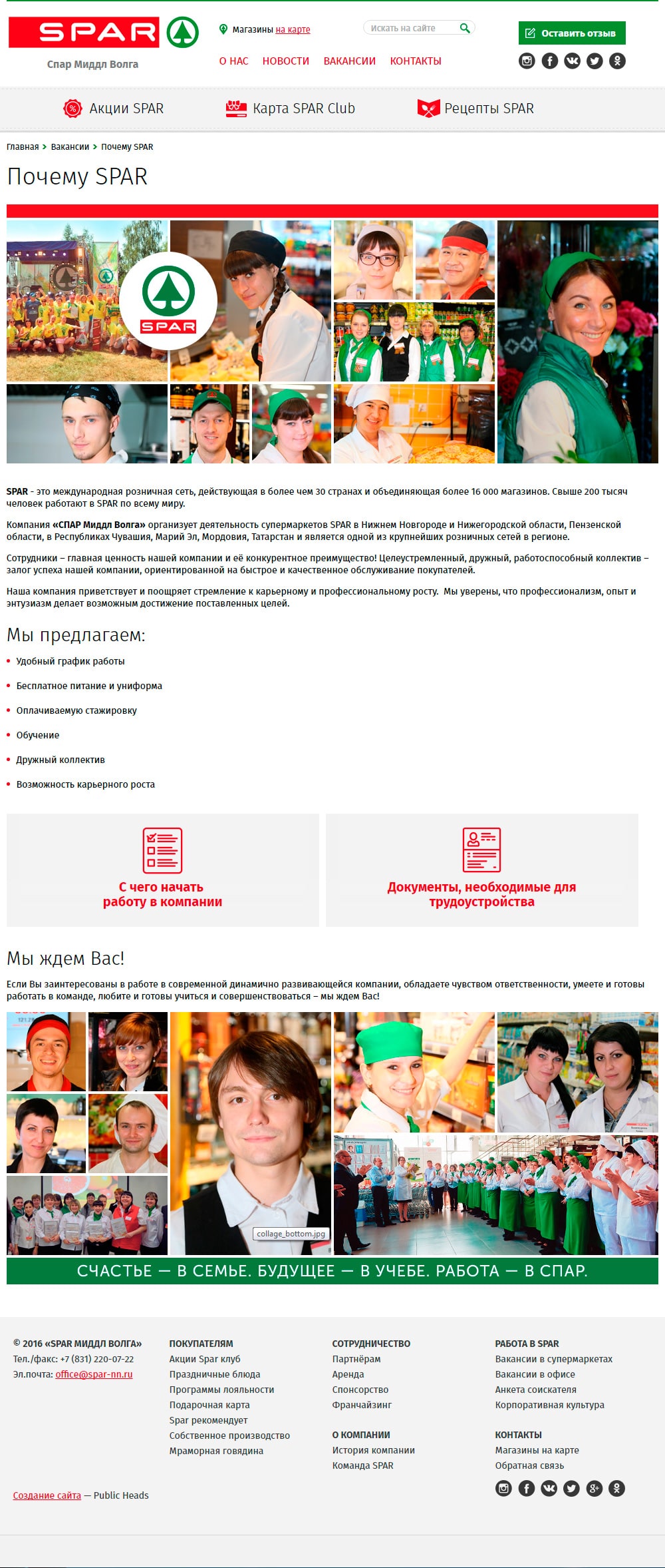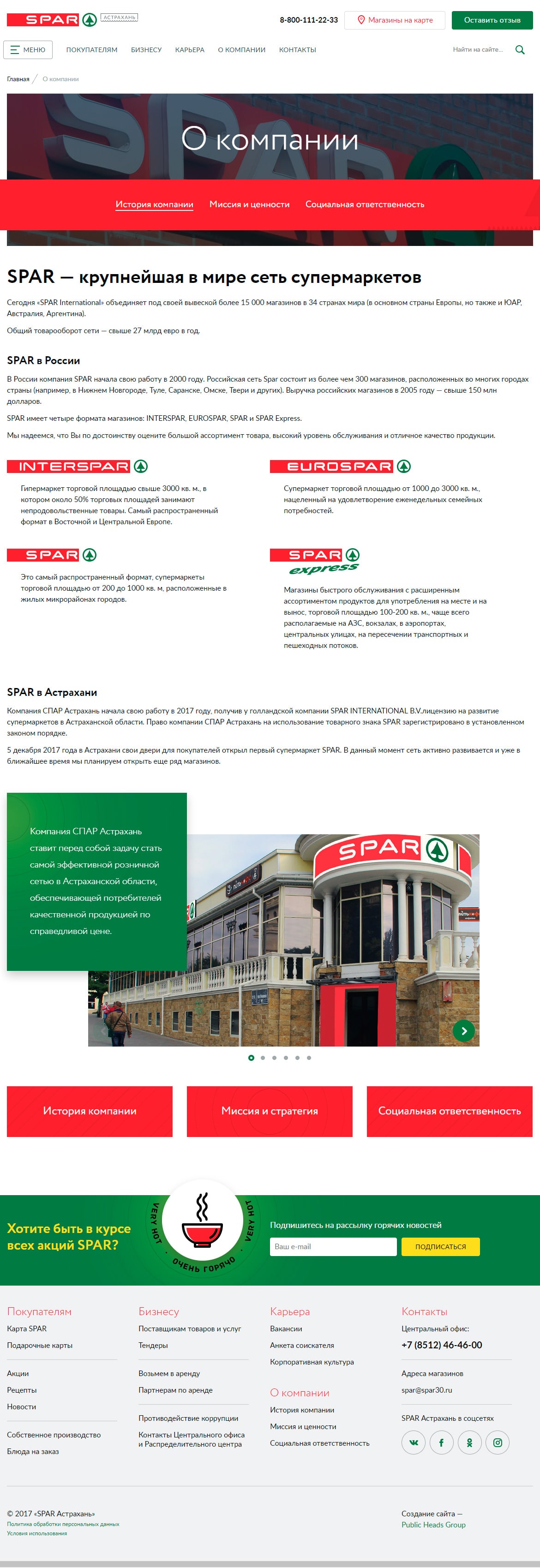 Сайт для ритейлерской сети СПАР Миддл Волга