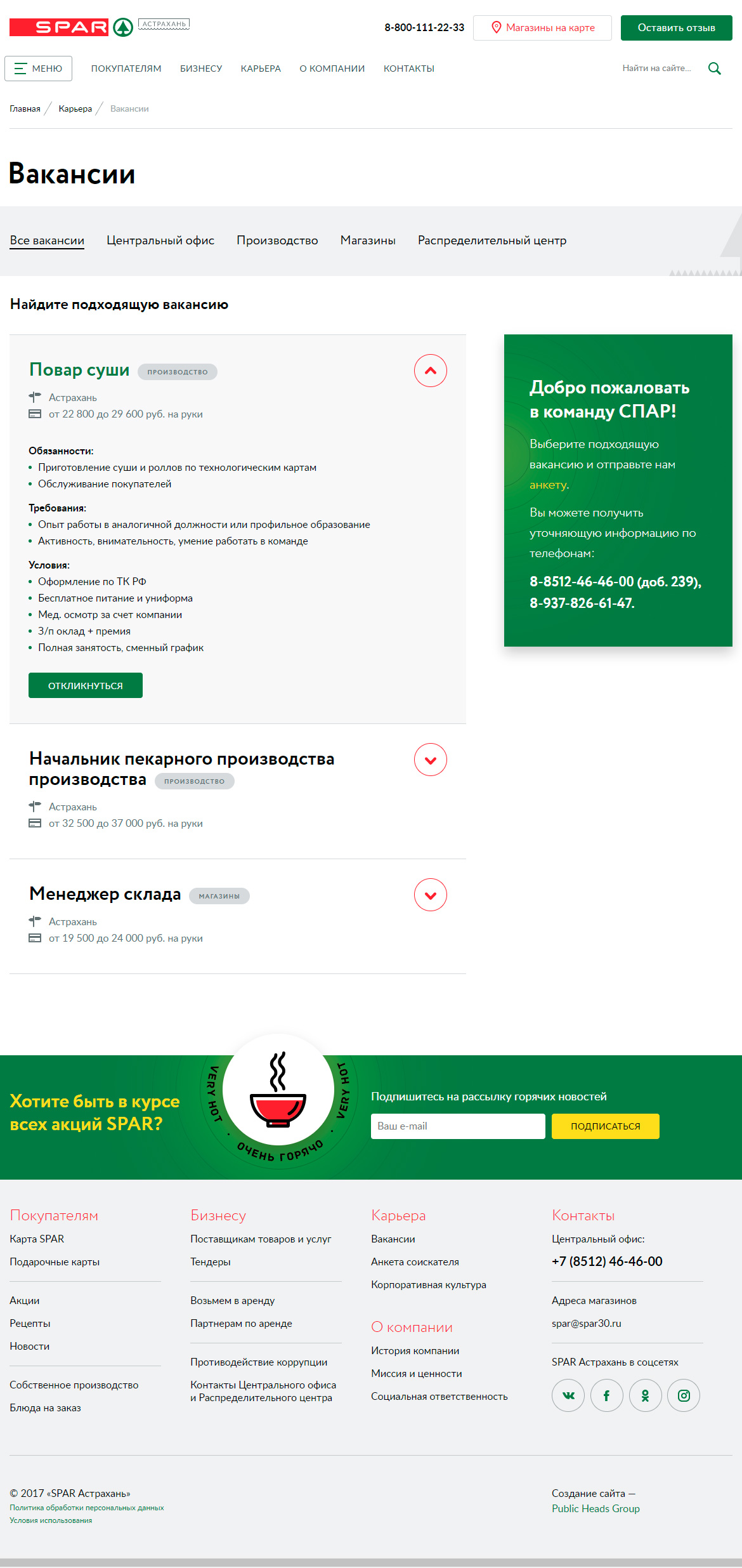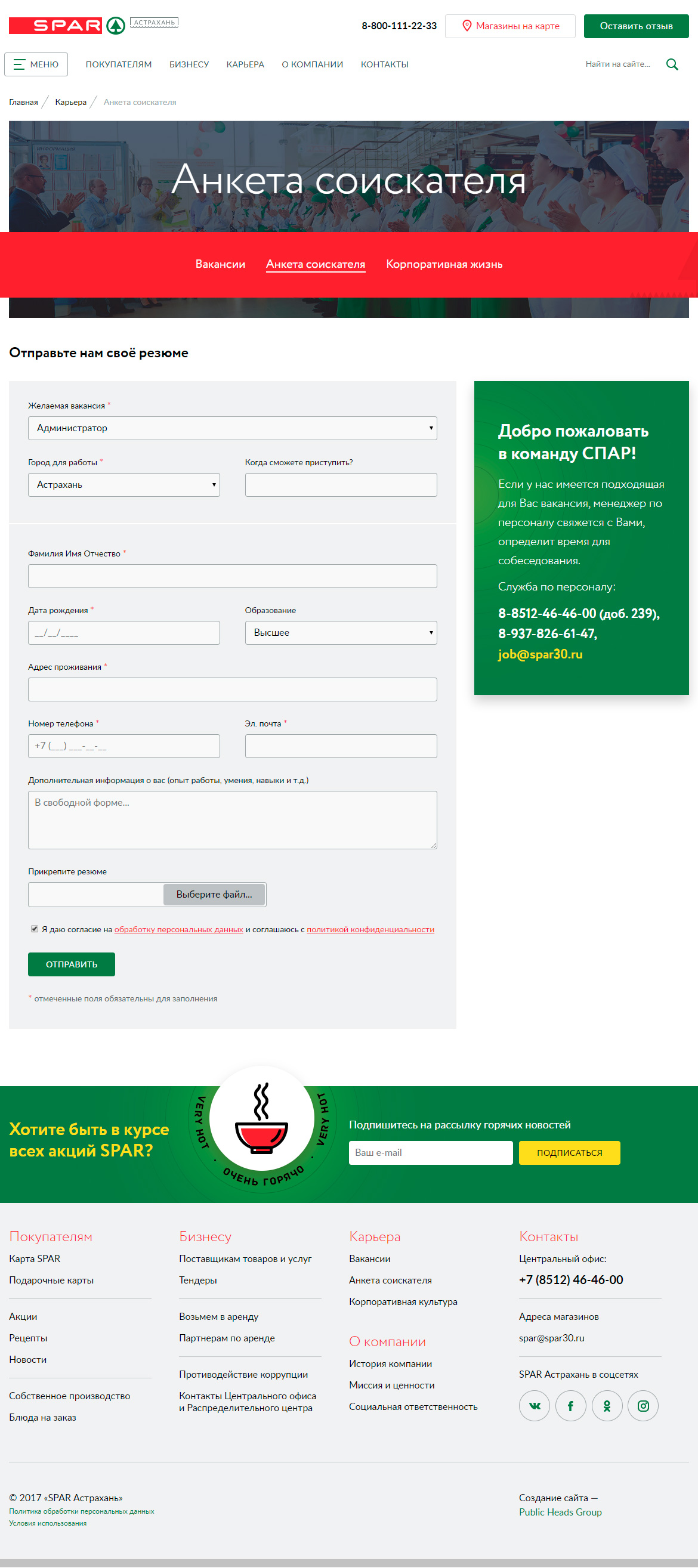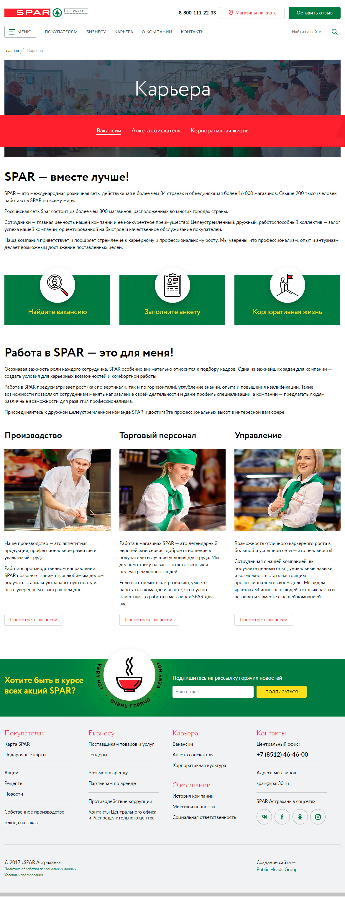 Сайт для ритейлерской сети СПАР Миддл Волга
