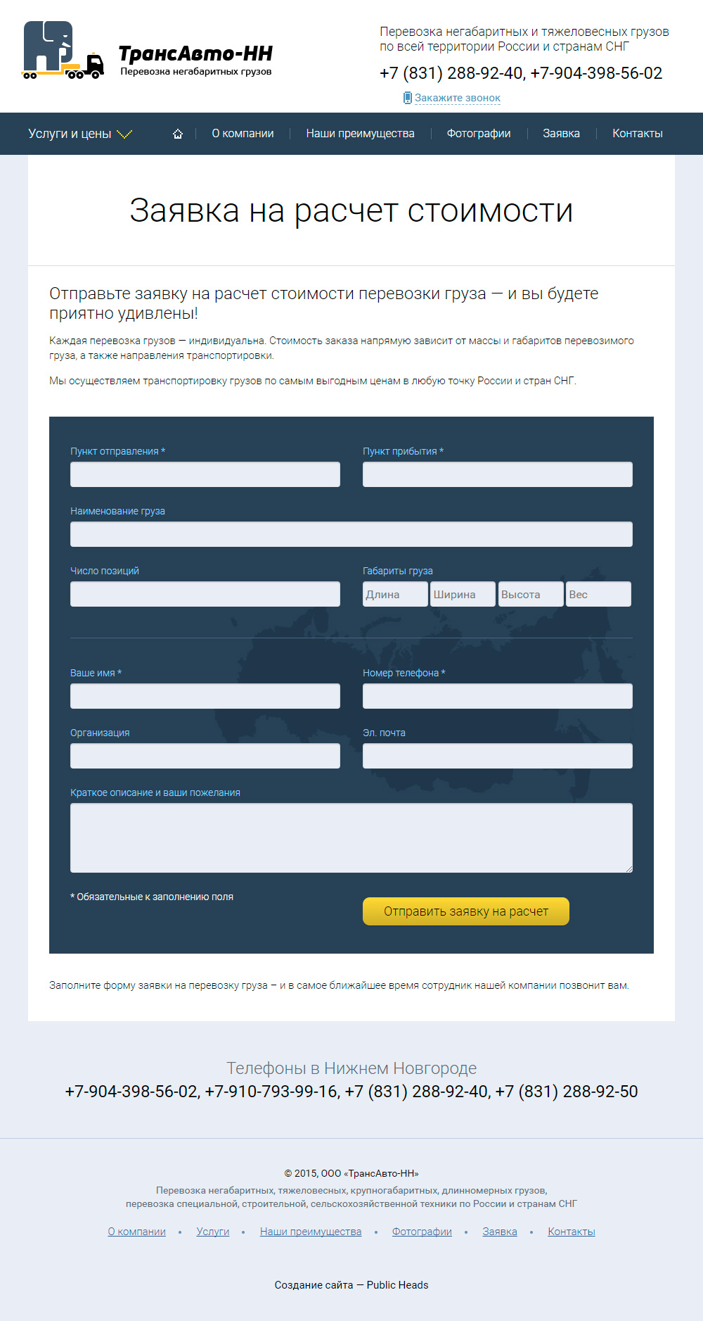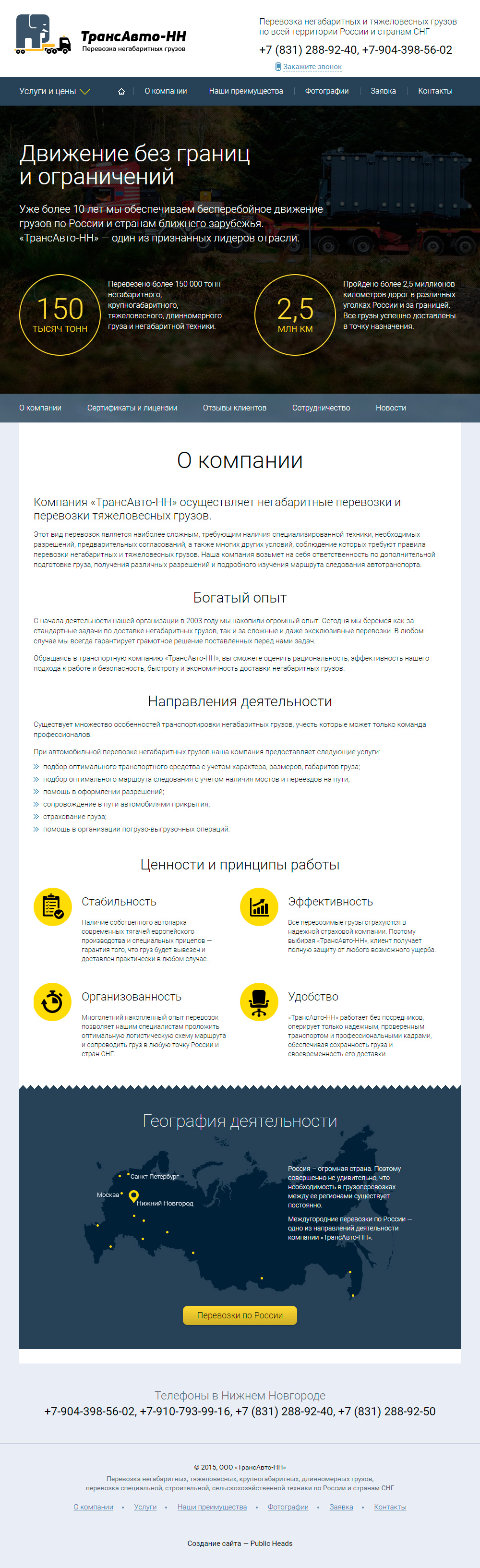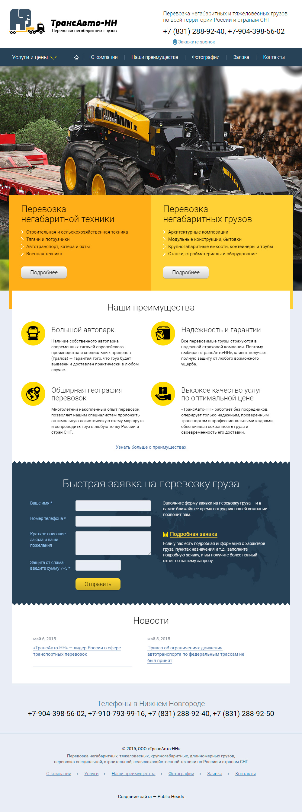 Сайт для перевозчика негабаритных и тяжеловесных грузов